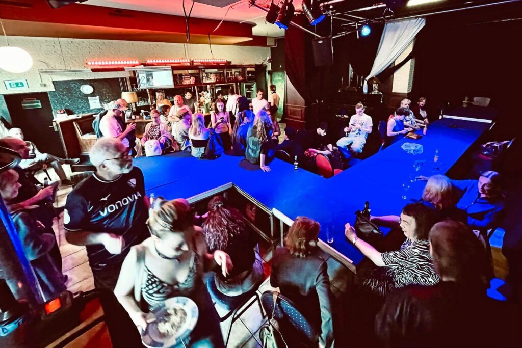 An der großen Theke setzt sich diese Atmosphäre fort: Nach der Vorstellung wird hier diskutiert, gelacht und reflektiert – Begegnung wird zum festen Bestandteil des Theaterabends.
